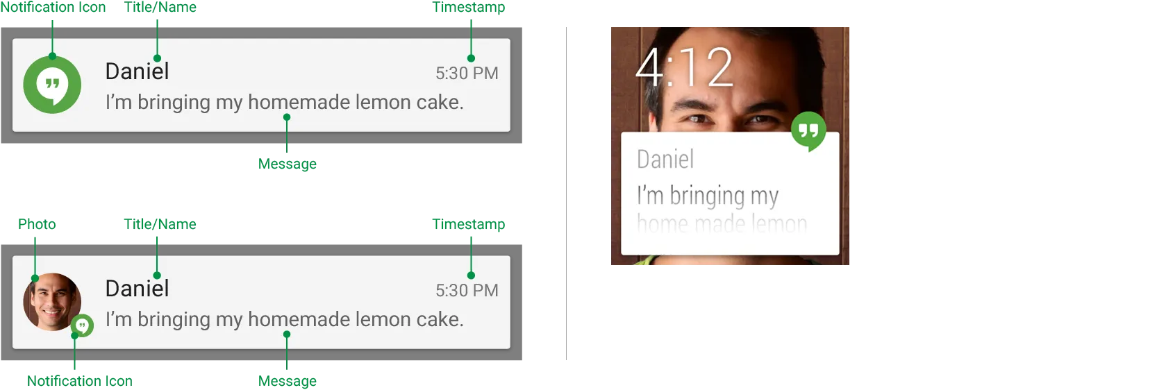 }这里我截取了两段比较关键的代码,在用 NotificationCompat.Builder 实例化我们的通知后,最终需要将各种图标,参数配置,应用到通知视图上面。可以看到如果我们只设置 smallIcon 而不设置 largeIcon 也是可以的,此时直接将 small 作为大图标设置给左侧的 id 为 R.id.icon 的 ImageView。要注意的事一般情况下都不可以不设置 smallIcon,否则通知无法正常显示出来。 processSmallIconAsLarge 方法里面负责将我们设置的 smallIcon 二次处理,也就是这里会改变我们最终看到的通知图标,包括顶部状态栏和下拉显示的小图标。 参考 http://developer.android.com/design/patterns/notifications.html http://developer.android.com/guide/topics/ui/notifiers/notifications.html
