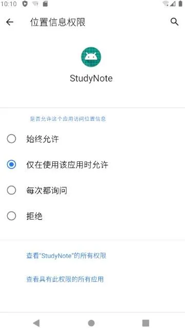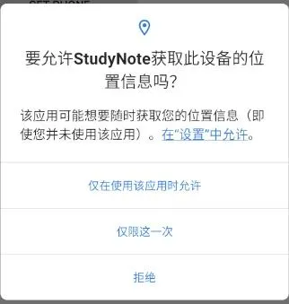 ACCESS_BACKGROUND_LOCATION),并选择Allow all the time(始终允许)才能获得后台位置权限。Android11 设备上再次加强对后台权限的管理,主要表现在系统对话框上,对话框不再提示始终允许字样,而是提供了位置权限的设置入口,需要在设置页面选择始终允许才能获得后台位置权限。 - 在搭载 Android11 系统的设备上,