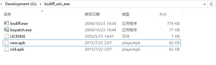 使用命令bsdiff old.apk new.apk update.patch 便可以生成一个名为 update.patch 的补丁。