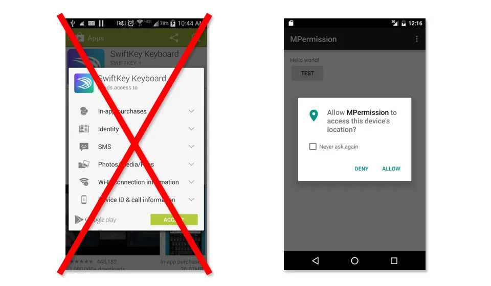如果你是个 android 开发者,意味着要完全改变你的程序逻辑。你不能像以前那样直接调用方法了,你不得不为每个需要的地方检察权限,否则 app 就崩溃了!
