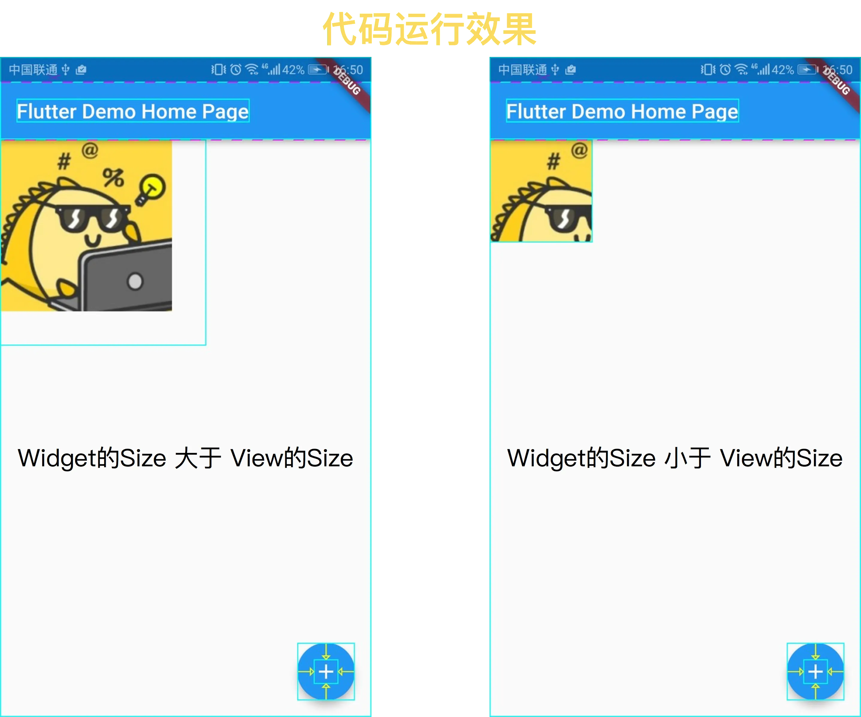 我们尝试修改 Native 端 View 的大小: 同时修改 Flutter 的大小 可以看到,Flutter 端的大小是小于 Native 端的 实际显示效果: