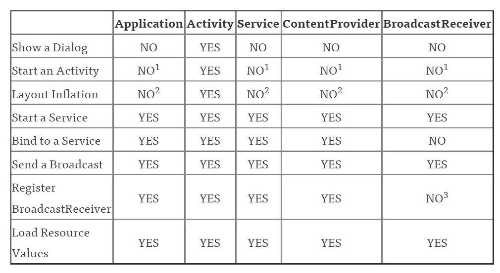 Callback Service BraodcastReceiver ContentObserver Handler Thread